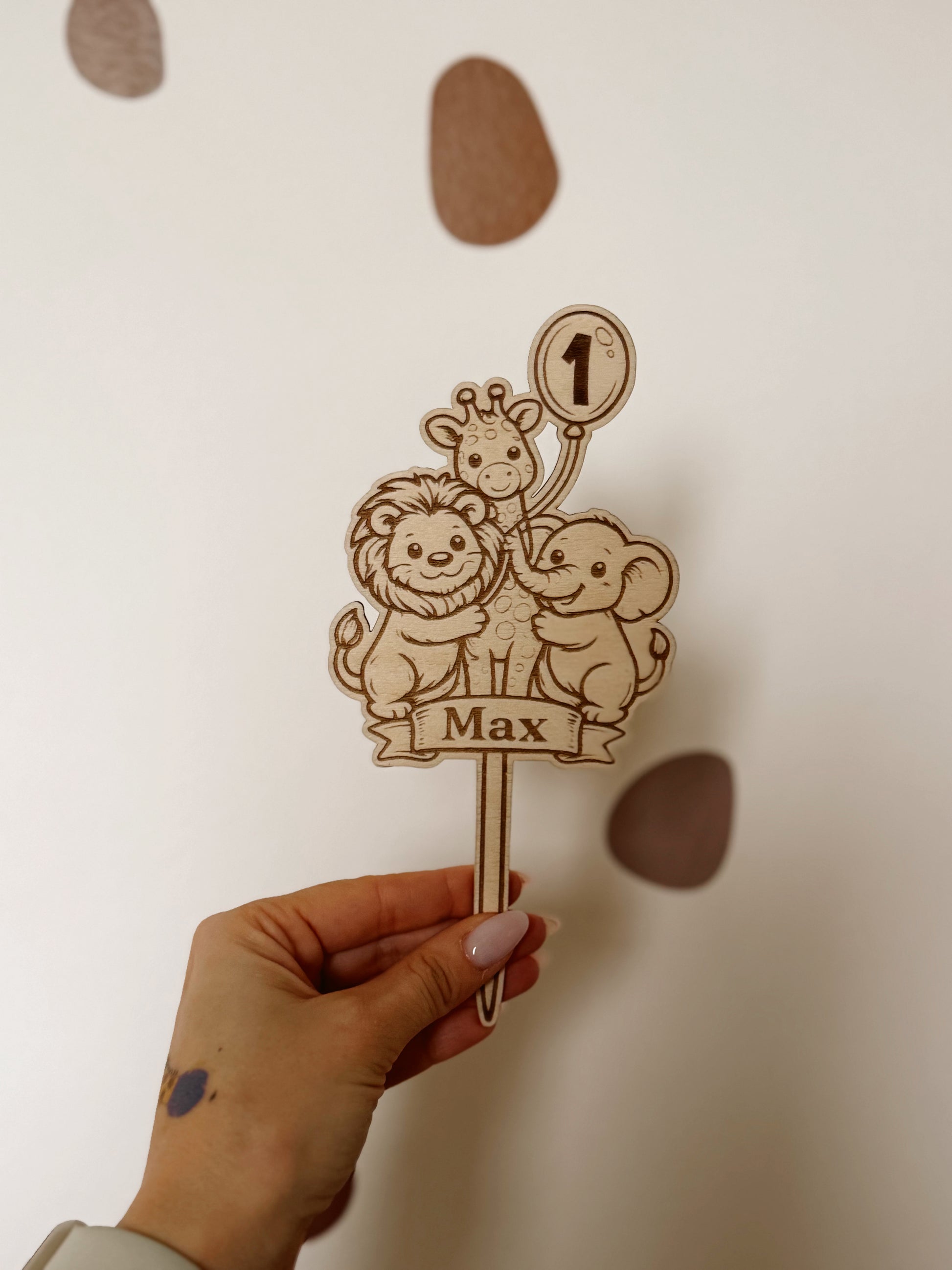 Originální dřevěný zápich na dort s motivem Safari, který se stane milou vzpomínkou na narozeniny! Po oslavě si jej dítě může vybarvit a uchovat jako upomínku. Vytvořte tradici – každý rok nový zápich, každý rok nová vzpomínka.