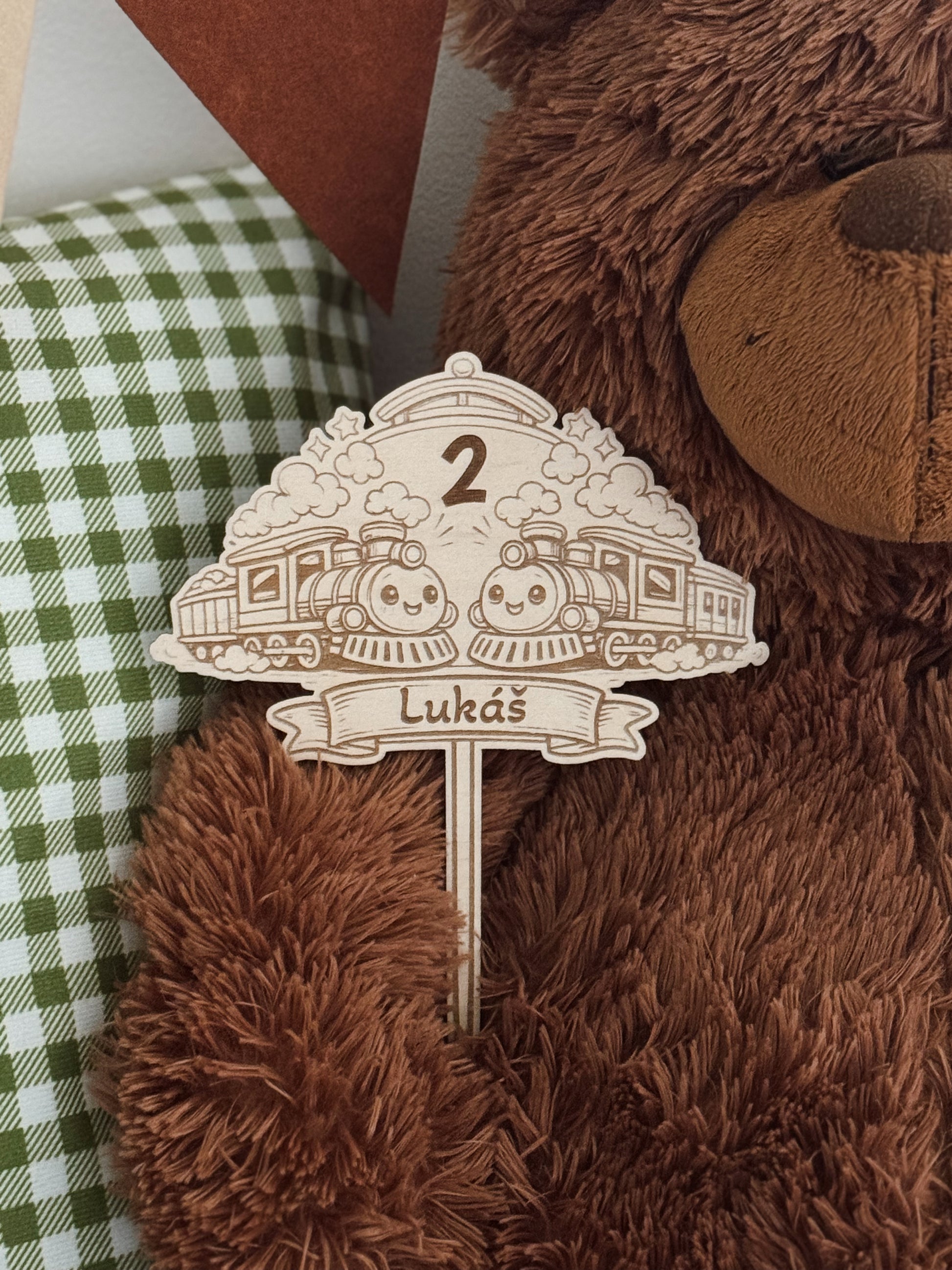 Originální dřevěný zápich na dort s motivem Vláček, který se stane milou vzpomínkou na narozeniny! Po oslavě si jej dítě může vybarvit a uchovat jako upomínku. Vytvořte tradici – každý rok nový zápich, každý rok nová vzpomínka.